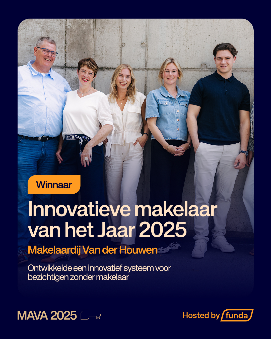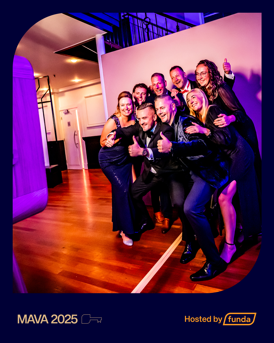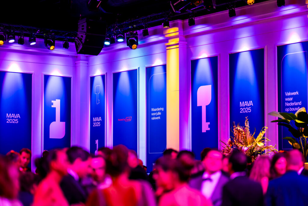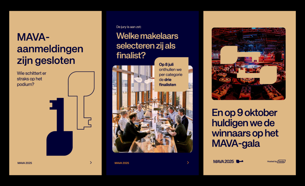 - Bij gebruik van het MAVA (2025) logo moet altijd het ‘Hosted by Funda’ beeldmerk ook te zien is.