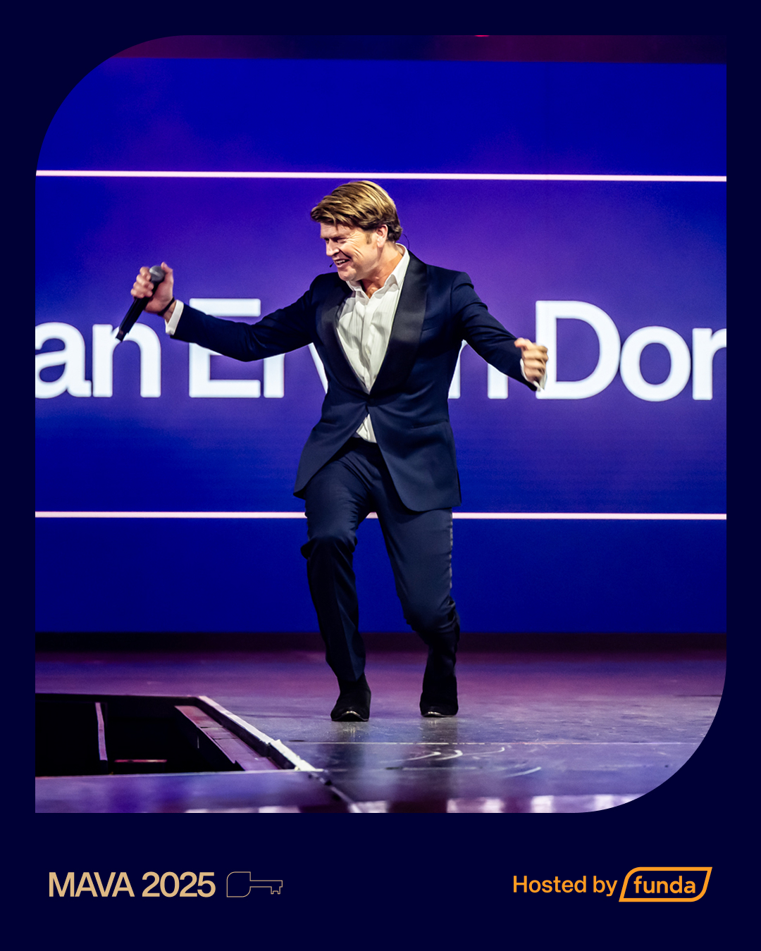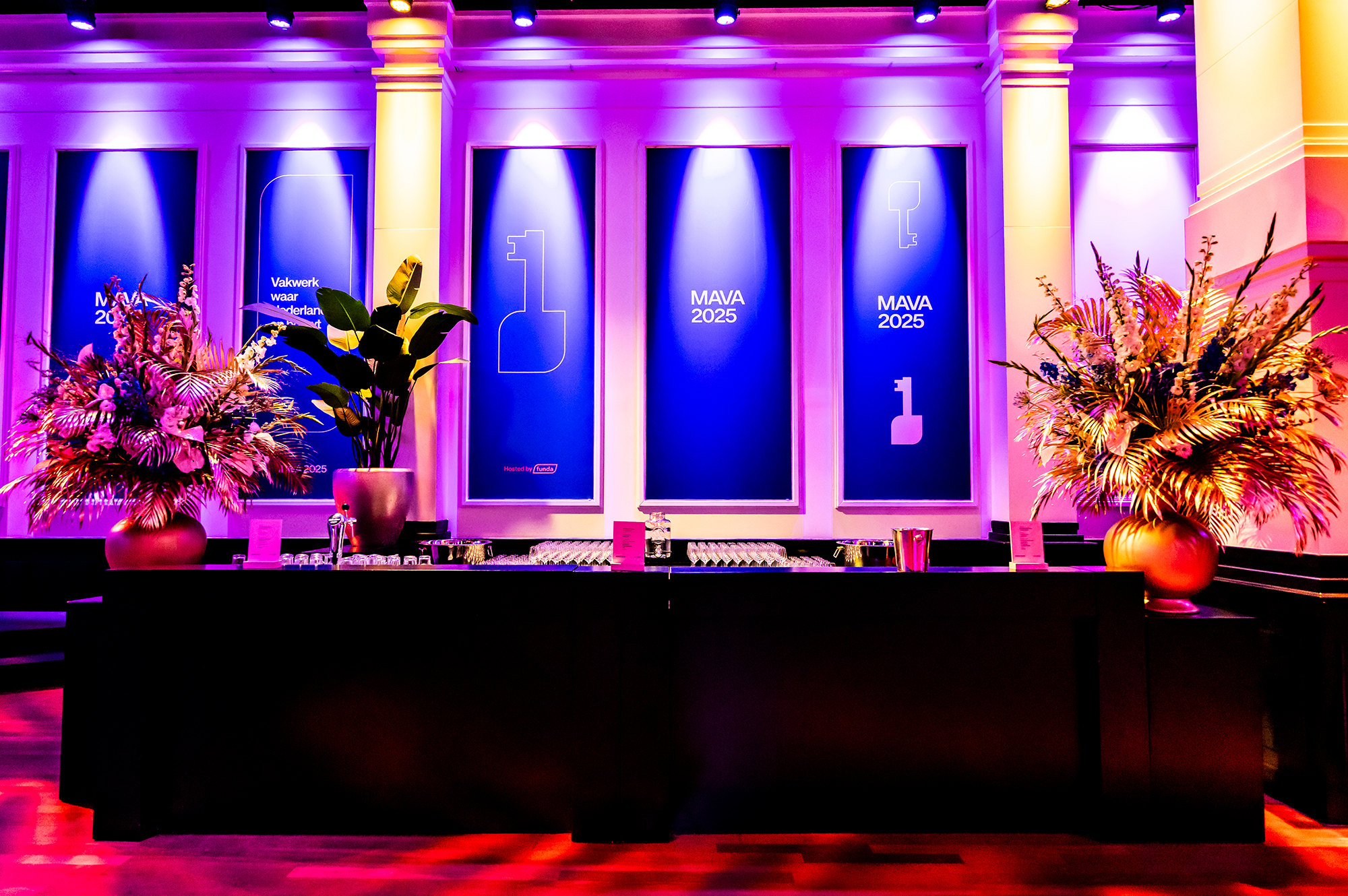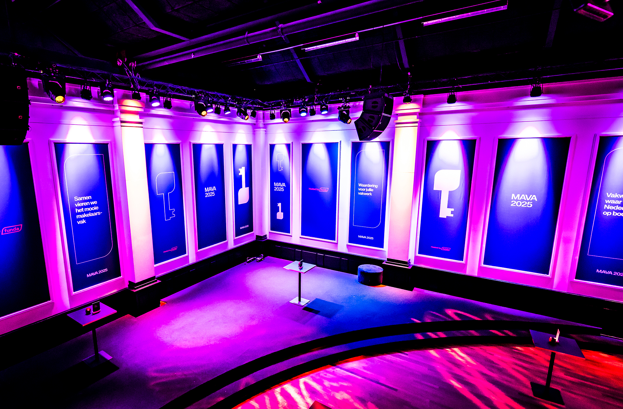 - Bij gebruik van het MAVA (2025) logo moet altijd het ‘Hosted by Funda’ beeldmerk ook te zien is.