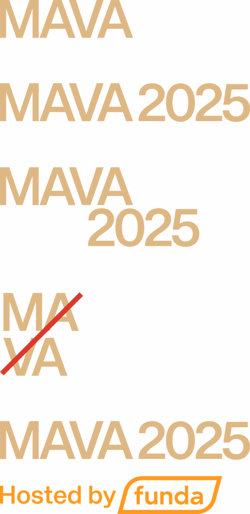Het MAVA logo bestaat simpelweg uit het woordmerk en waar nodig of gewenst het jaartal toegevoegd. Bij prijswinnaars moet altijd de editie/jaartal te zien zijn (2025).
